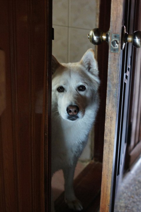 기다려 시켜놨더니 문틈으로 저리 빼꼼 보고 있어요..