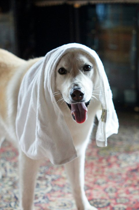 수건으로 몸을 닦이는 걸 참 좋아해요.
