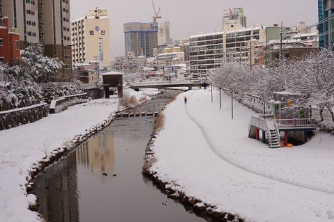 집 근처 도심하천.. 이렇게 눈이 가득..가득..