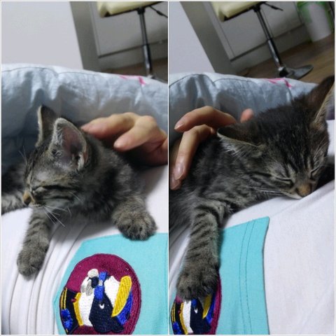 그르릉그르릉 좋다고 계속 골골송을 부르더라구요. 배위에서 꾹꾹이하고 난리ㅎㅎ