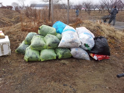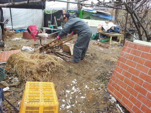 무너진 하우스에서 나온 쓰레기 정리부터 하셨어요^^