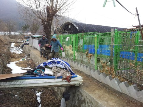 쓰레기 정리해서 손수레로 또 여러차례 옮기셨답니다