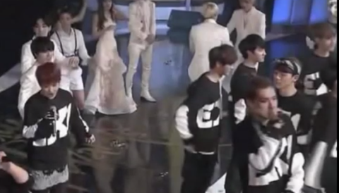 수상소감을 말해야하는데 다른멤버들에게 수상소감을 양보해주고 뒤에있는데 샤이니 태민선배님이 앞으로가서 수상소감 말하라고 하는 장면