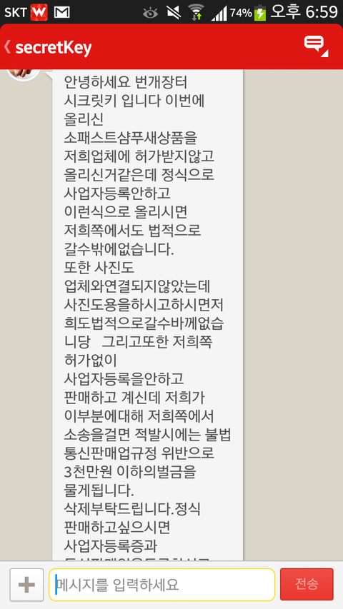 패스트샴푸살겸 대리구매해드리려고번장에 올렷는데요 저사람이 저렇게 왔어요 이거 사업자등록해야되는건가요? 직업으로 대리구매를 하겠다는것도아니고 저 살때 같이 공동구매형식으로 대리구매한다는건데 이것도 사업자등록해야되요? 아니면 그냥 이사람이 자기보다 더 싸게 팔아서 기분 나빠서 겁주려고 이러는건가요 ..ㅋㅋ