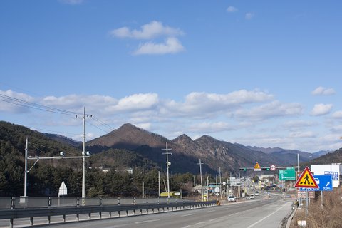 저 멀리.. 갑자기 산이 수상하다 구름도 끼어있는게..