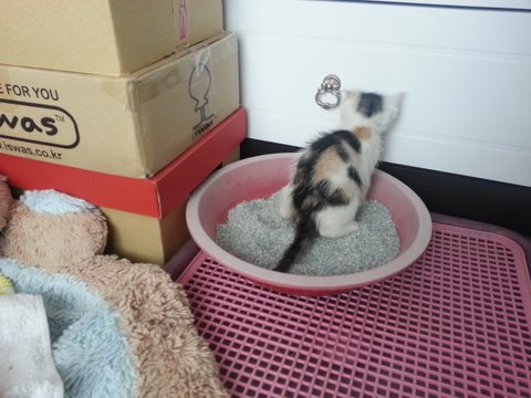 화장실 모래로 배변을 덮고...ㅎㅎ
