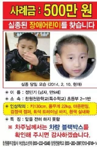민기는 경남 창원시 성산구 가음정동 특수학교인 창원천광학교 학생으로 지난 10일 오후 1시20분께 학교에서 수업을 마치고 교내 방과후 교실로 이동하던 도중 갑자기 무릎 높이의 담장을 넘어 학교 밖으로 사라졌었다고 합니다.