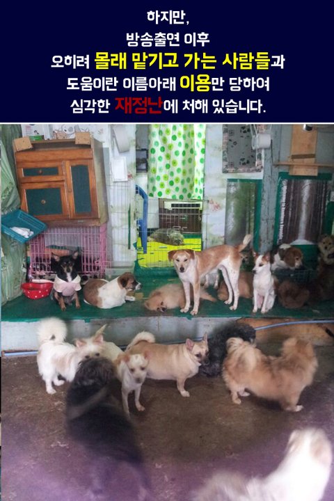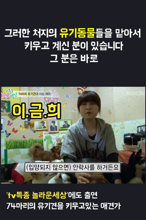 현재 이 유기견들을 돌보고 계신 이금희분의 뉴스도 보았는데….