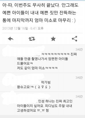 진짜 가식없이 착한애들이란게 느껴진다. 그 위안부 후원하는 희움 팔찌? 그것도 언플 하나 없이 데뷔때부터 조용히 차오던 애들이다. 화보촬영하고 나서도 스텝들 힘들까봐 옷정리 하나하나 다 하고 간다고 한다. 믿으나 마나 자유겠지만 아는분이 그쪽 종사하셔서 들었는데 그동안 착한 아이돌도 많았지만 이렇게 까지 정이 가고 이쁜 아이돌은 처음이라 하신다. 대회 상품으로 받은 애들이 좋아하는 한우도 출연자에게 나눠주고. 진짜 착한 아이돌인듯. 그래서 더 정이가고 관심이 간다
