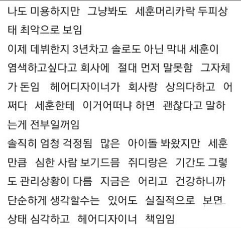 내가 세훈이 계속 염색 바꿀때 알아봣어 근데