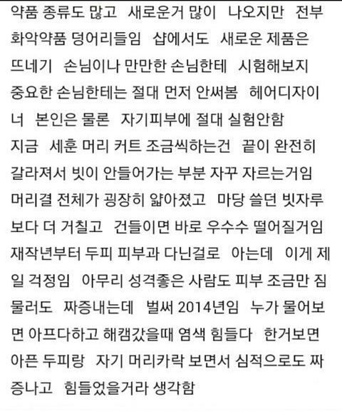 앞으로 그만좀 염색시켜 진짜 애 망가트리겠네.