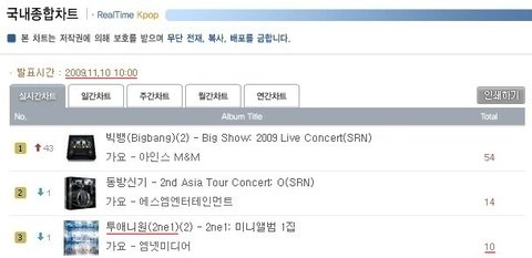 아돈케어때 매일같이 1만장의 음반판매량으로,전성기 동방신기급의 음반강자의 면모를 보여주던 2ne1은,그 직후 팬덤이 개박살 났는지, 전혀 음반이 팔리지 않는다.개박살난 팬덤이 신기하게 다시 복구될지 지켜볼 일이다.^^