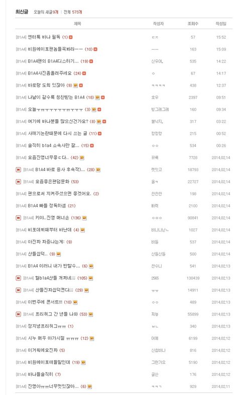 하루에 B1A4 팬이 쓴글 열개는되냐?