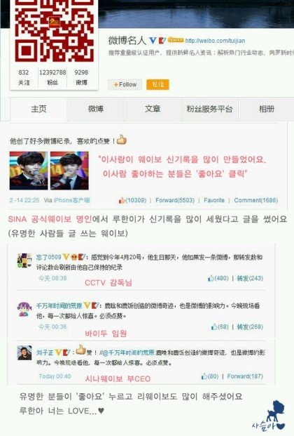 웨이보신기록을 많이 깹쏭~