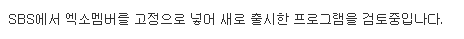 SBS에서 엑소멤버를 고정으로 넣어 새로 출시한 프로그램을 검토중입나다.