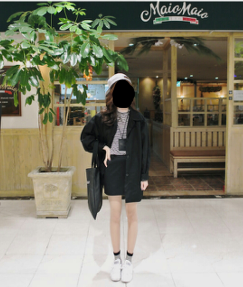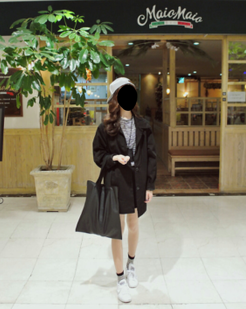 문제되면 지울게!!~ 피팅모델이 입고있는 검은색 코트 말이야 고딩이 입을건데 어때??