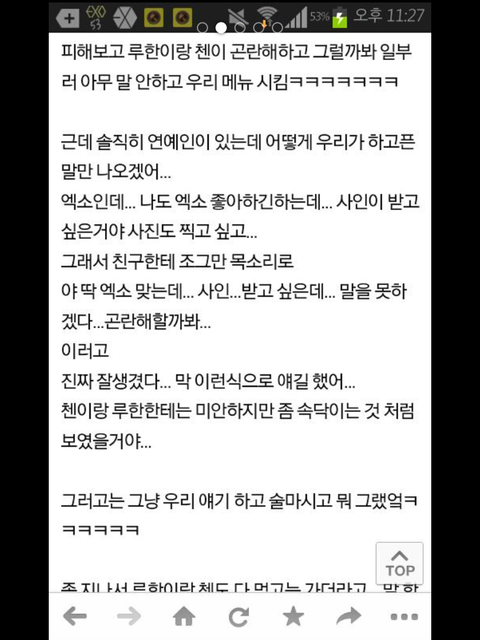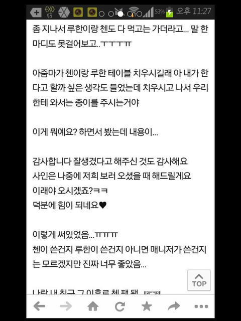 종대 글씨체가 아닌 것 같은데.. ㅐ쓸때 N자 뒤집어 놓은 것 같이 쓰더라구요.. 글씨체가 바뀌었을 수도 있고 뭐 저게 사실이 아니라 해도 종대 착한건 다 알잖아요? 그냥 주저리 주저리 써봤어요 너무 마음에 새기진 말아요 종대생이 틀렸다는게 아니니까ㅎㅎ 내 진짜 맘 알거라 믿어요:)