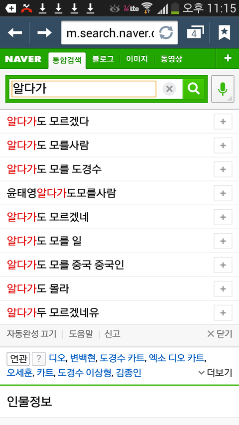 초록색 검색창에 『알다가』를 치면 『알다가도 모를 도경수』가 자동완성됨ㅋㅋㅋㅋ