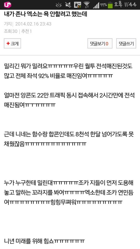 콘서트부심오짐ㅠㅠ 아이구ㅠㅠ 콘서트부심ㅠ자랑하고싶엉나바여ㅠㅠ우리도 단콘하면 니들보다 더빨리 매진할수잇어ㅠㅠ 우리는100 퍼센트 채울자신잇어ㅠ힝ㅠ