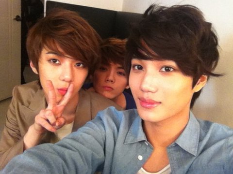 이때 얘들 카이 태민 루한 셀카 찍는거