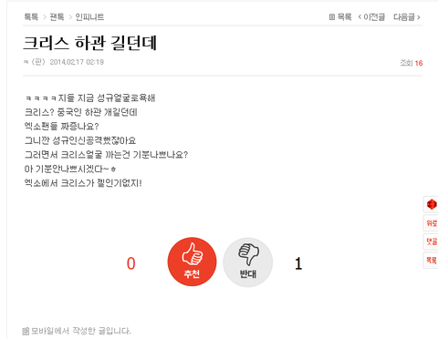 성규 중국돌아다니면 길가에여자들멈춰서서 볼정도에요?