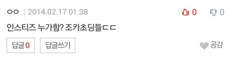 잘살아 초딩싸패년들앙 ㅠ.ㅠ 인티하는 너네바보가튼오빠들 관수잘하궁 ㅠ~ㅠ