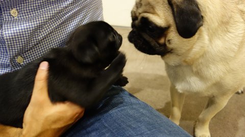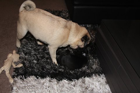 어쩔줄 몰라하던 심바가 날라에게 관심을 보이기 시작하네요. 킁킁하며 날라의 냄새를 맡고 있어요.