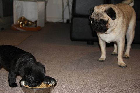 너무 맛있게 잘먹죠? 심바가 나눠먹자고 눈치를 줘도 꿈쩍없이.. 곧 심바처럼 뚱뚱이가 될까 걱정되리만큼 잘 먹습니다.