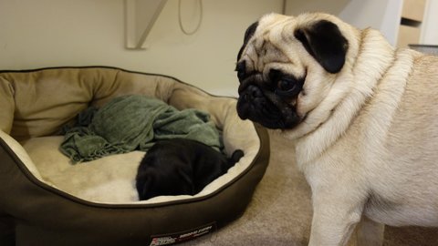 심바가 눈치를 계속 주는데도, 요 아기는 그저 심바의 침대를 즐기고 있을 뿐..