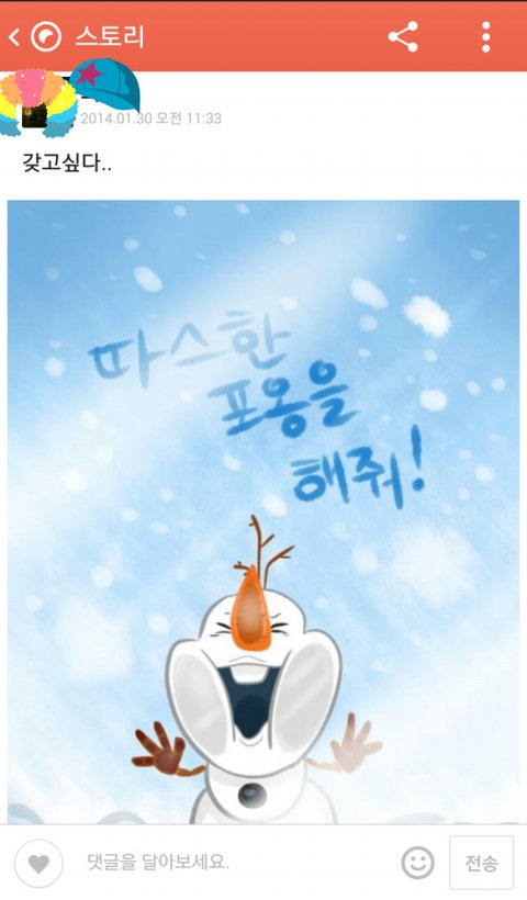 그리고 '올라프'의 매력에 푹~빠져있었어요. 그날 여자친구의 SNS에 이런글이 올라왔더라구요.