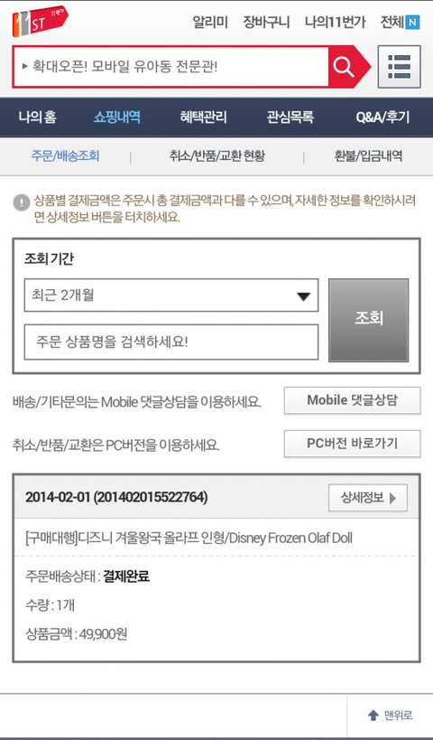 저는 포기하지 않고 다른곳에서 똑같은 인형을 다시 두번째 주문했죠.