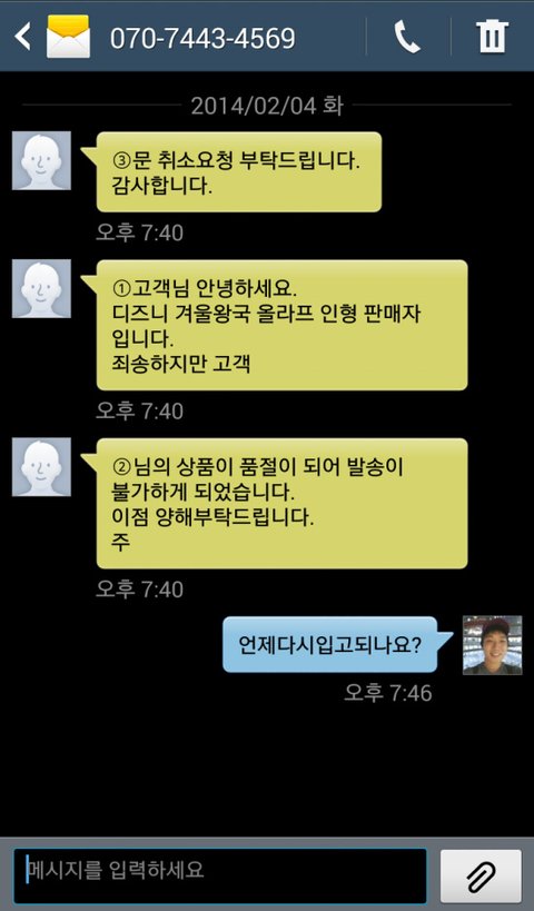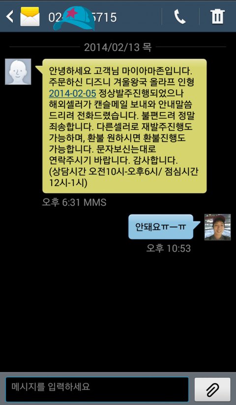 2월13일 여자친구와 '겨울왕국'을 보러 가는날 이런문자가 왔습니다.