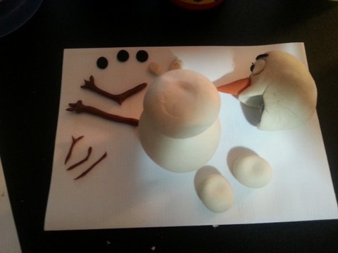 파란색을 많이 노란색과 빨간색을 조금 섞어서 올라프의 팔과 머리카락을 만들었어요.