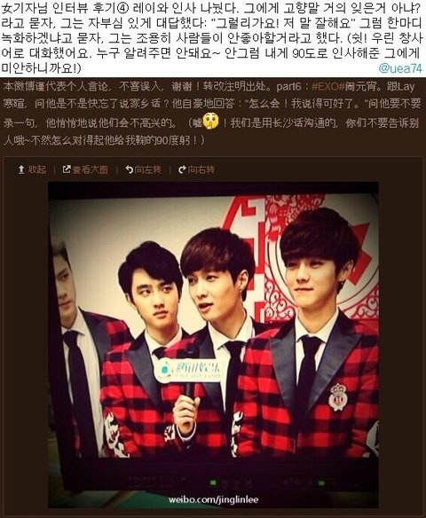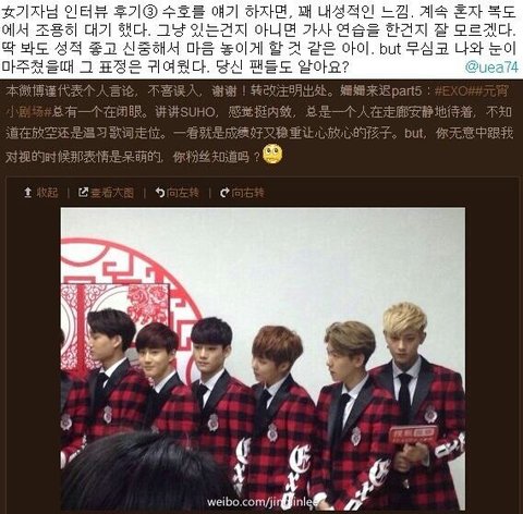 EXO와 인터뷰한 중국기자님 웨이보!