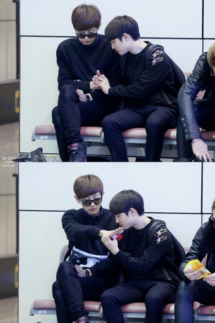 그래서 다시 경수가 찬열한테 주려니까 디게 단호하게 막는다.