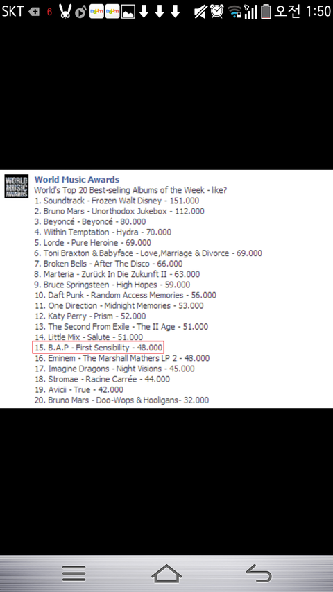 이거엄청대단한거아님???15위........... 비욘세 원디렉션 브루노말스...... 귣♥