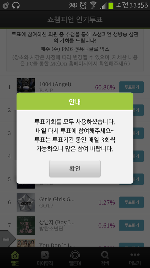 11시쯤 일어나서 맨처음 아이디로 투표할때도 68퍼센트였는데
