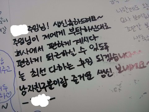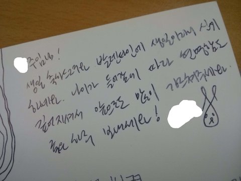 생일파티를 하고 먹을 거 다 먹고 자리로 와서 카드를 열었는데