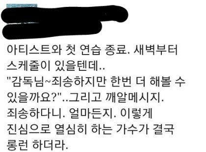 자신들도 힘들어서 그만하자고하면 알겟다고하며서 쉬기일수인데 자신들이먼저 한번만더하자며 애교부리고 감독한테 힘내라고 써주는아이돌..