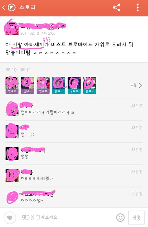 니 아빠가 널 안낳아주셨으면 넌 비스트를 알지도 못하고 티슈에 닦여 쓰레기통으로 날라갔어 이년아