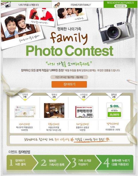 가족사진으로 당첨되면 그 사진은 평생 잊지 못하는 가족의 소중한 추억이 될거 같구요여러분들도 한번 참여하시고 다양한 경품 받아가시는것도 좋을 것 같습니다