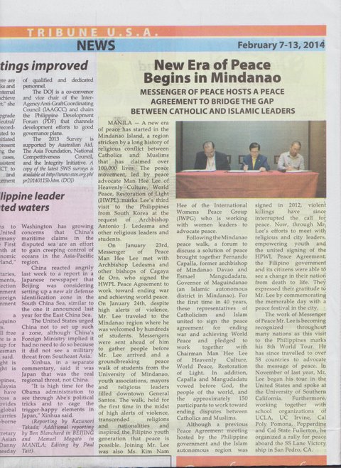 필리핀 민다나오 섬 평화협정 체결에 큰 역할을 한 이만희 대표?