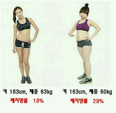 사이즈는 근육보다 지방이 더 부피가 있는데 말이죠 ~^^