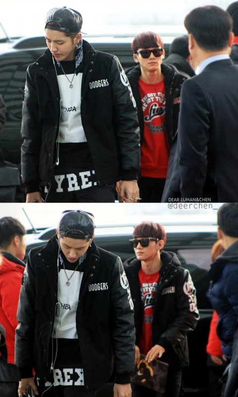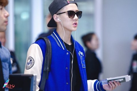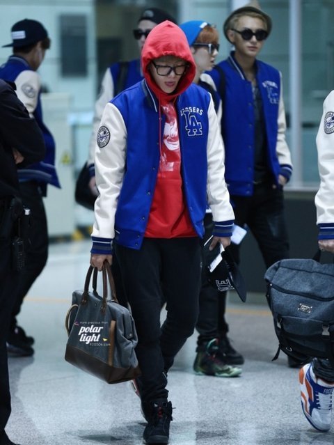 야구잠바를 입은 엑소의 공항패션임!