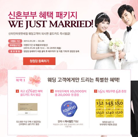 신라인터넷면세점에서 현재 신혼부부들을 위한 여러이벤트가 있어서 소개드려요~!놓치기 아까운 기회일거 같아 많은분들에게 소식 전해드리겠습니다 ^^