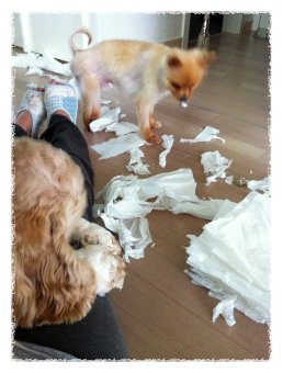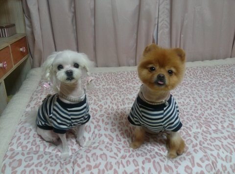 왼쪽 말티가 별님이,오른쪽 포메가 댕댕이
