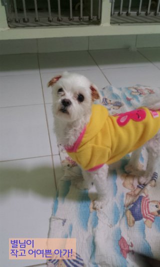별님이는 시장거리를 헤매고 돌아다니다 그 동네 초등학생들이 구조해 보호소에 데려다주었대요