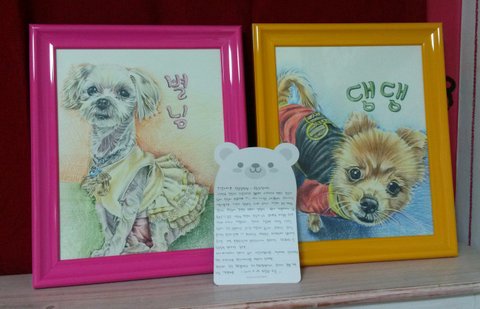 지인분께서 그려주신 별님이와 댕댕이에요.