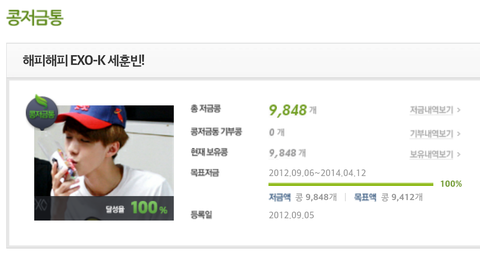 지금 100% 다 모았긴 한데 세훈이 생일전에 기부하면