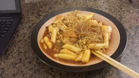 한국에서 공수해온 불닭소스와 고추장 사이다 설탕 조금.넣고 쫄면 붉닭 국수 군만두넣고 간단히 맨들었는데 맛이 짱짱떡이여유 한번해보세요 근데 완전 맵다는